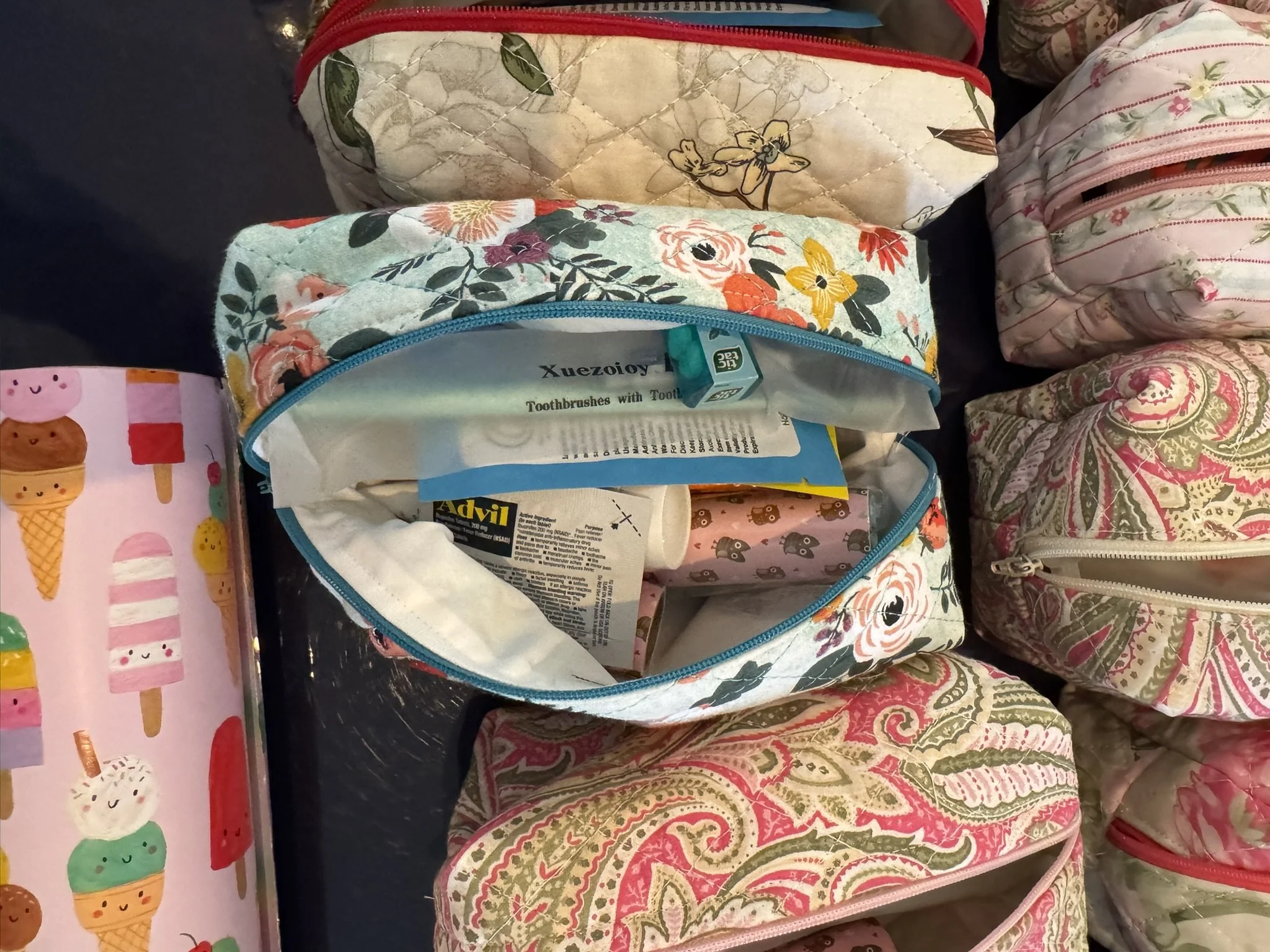 Our mission is to hand create and distribute essential travel bags filled with necessities every woman needs to foster dignity, compassion, confidence and respect. Through community, collaboration and care, we offer support to alleviate everyday burdens in the hope of contributing to every woman’s journey towards a brighter future.